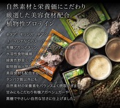 大豆タンパク(アメリカ合衆国製造)、有機アガベシュガー、黒糖、有機アガベイヌリン、コーヒー、発芽玄米タンパク、ドロマイト、ホワイトチアシード、エンドウ豆タンパク、グルコマンナン、穀物麹抽出組成物、カルシウム(天然水由来)、みりん粕パウダー、鉄含有酵母、ケール、モリンガ、ブロッコリー、甘薯、マカ、ユーグレナ・グラシリス発酵物、ビタミンD含有酵母、アマランサス、キヌア、クコの実、チアシード、バオバブ、ほうれん草、小松菜、麻の実、苦瓜、明日葉、桑の葉(一部に大豆を含む)
